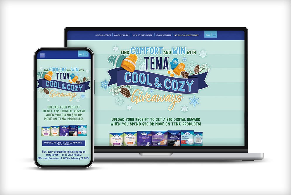 Essity This fun and engaging digital contest was created to drive product trial and to reward long time customers for their loyalty. By keeping the signup and prize process super simple, we removed the friction and successfully brought in a wave of both new and happy returning, users.